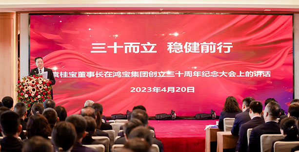 大道求索三十載,繼往開來新時(shí)代。2023年4月20日,鴻寶集團(tuán)創(chuàng)業(yè)三十周年慶祝典禮在總部園五樓多功能廳隆重舉行。