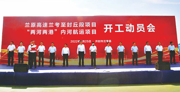 2022年6月25日上午9點(diǎn),蘭原高速蘭考至封丘段、“兩河兩港”內(nèi)河航運(yùn)等7個(gè)基礎(chǔ)設(shè)施項(xiàng)目集中開工動(dòng)員會(huì)主會(huì)場(chǎng)在蘭原高速蘭考至封丘段項(xiàng)目建設(shè)工程施工現(xiàn)場(chǎng)拉開帷幕。