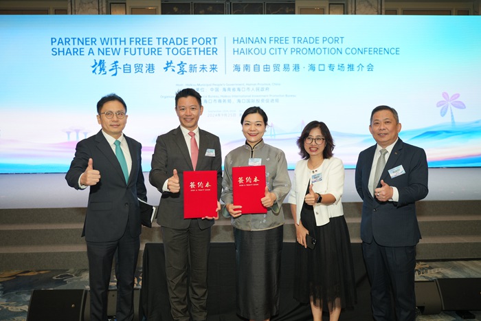 攜手自貿港,共享新未來。9月25日,海口市在新加坡舉辦全球大招商活動,來自新加坡、德國、法國、日本等國家和地區的企業,與海口有關單位共簽約34個重點項目,項目總投資額近100億元。鴻寶集團副董事長、總裁袁曉曦與鴻寶集團董事、海南投資控股公司總經理李真受邀參加此次大會。