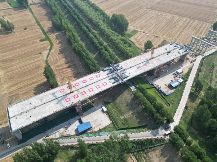 6月6日上午十一點,西跨大堤橋連續梁合龍儀式在黃河西大堤舉行。中鐵大橋局集團一公司黨委書記、執行董事錢兵,項目公司總經理劉英、副總經理韓宏志、常務副總經理黃欽、財務總監王龍河、總工程師謝理洲及各參建單位負責人出席活動。