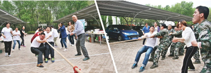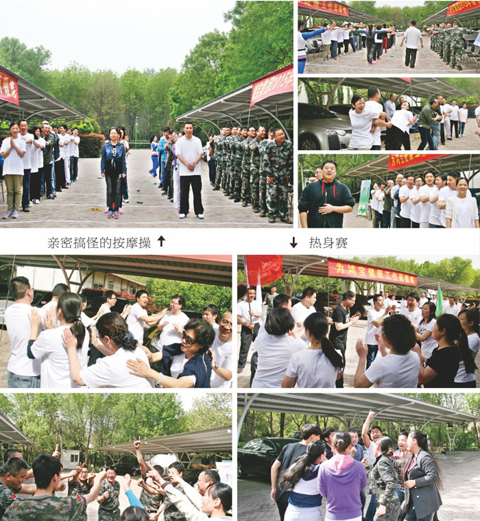 17日下午三點,全體人員又整隊聚集在集團停車場,精神飽滿地迎接下午的比賽。為了放松緊張的心情,在比賽前組織大家做了親密搞怪的按摩操,互相給隊友按摩。按摩操讓大家瞬間增加了親密度,放松了身心。