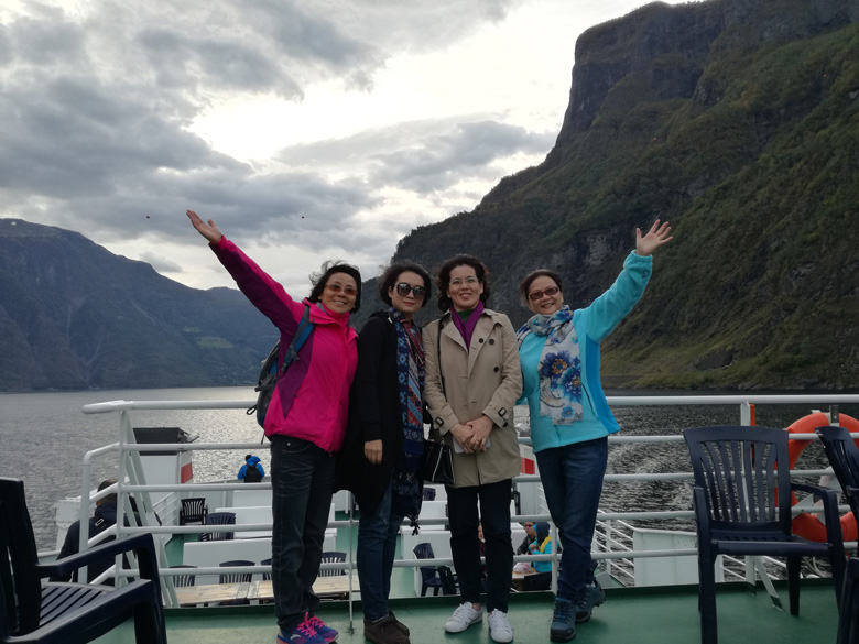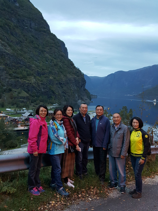 背山面水的挪威小鎮駐足合影