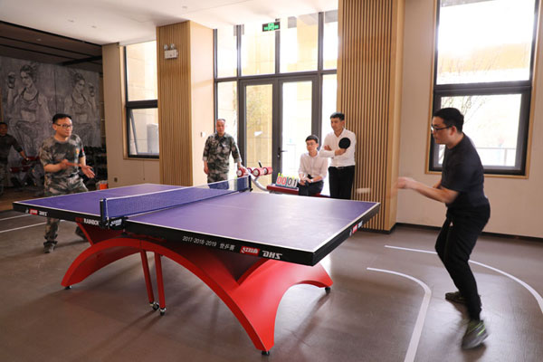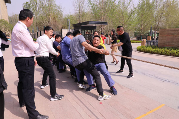在地產集團承辦的拔河比賽中,各企業代表隊踴躍參與,精英盡出,在比賽中分毫必爭,現場氣氛異常激烈。經過兩輪四場比賽的角逐,地產二隊獲得比賽冠軍,集團公司代表隊獲得亞軍。在乒乓球單打比賽中,雙方你來我往,斗智斗勇,互不相讓,比分也在交叉上升,最終集團公司張繼賢和地產集團任叢叢分別摘得男子、女子單打桂冠,滿載而歸。在趣味運動會現場,園林集團為大家準備了跳繩、踢毽子、滾鐵環、碰陀螺四個小游戲,讓大家在緊張的工作中適當放松,重拾童年樂趣,重溫童年時光。