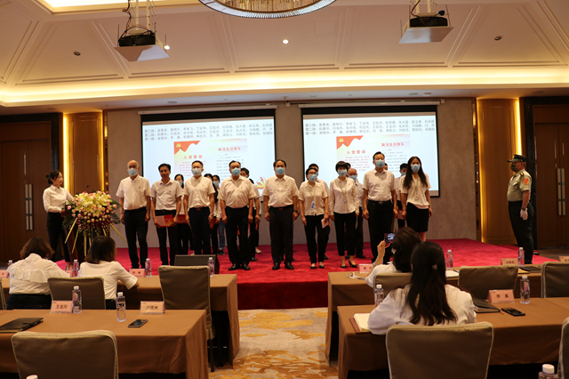 在集團公司總裁辦主任丁曉亞的主持下,全體參會人員起立,合唱國歌,本次活動在莊重肅穆的氛圍拉開序幕。隨后,集團黨委書記鄧和平為全體黨員同志頒發政治生日賀卡,并在鮮紅的黨旗面前重溫入黨誓詞。錚錚誓言,令全體黨員再一次受到思想的洗禮、心靈的觸動。