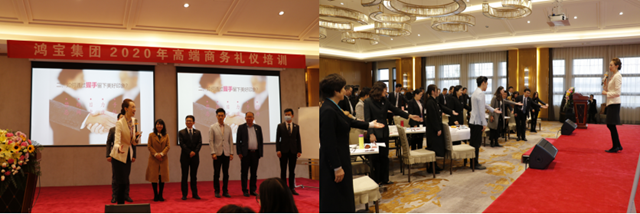 你的形象,就是你的影響力。伴隨著鴻寶企業發展邁入新階段,全面提升員工的職場禮儀,提升企業的商務形象,成為一個日益迫切的課題。為了使個人職業形象匹配企業發展需要,2020年11月21日,鴻寶集團特邀知名商務禮儀李泉老師,面向全集團中高層管理人員開展高端商務禮儀培訓。