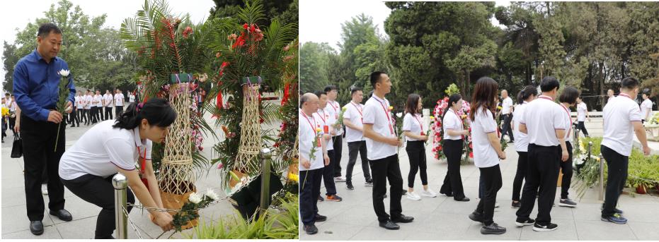 觀影后,大家步行至焦裕祿陵墓,列隊(duì)肅立,鴻寶集團(tuán)黨委書記鄧和平向焦裕祿同志敬獻(xiàn)花籃,全體人員三鞠躬,依次繞陵一周瞻仰焦裕祿烈士陵墓,獻(xiàn)上鮮花,致敬忠魂,寄托哀思。