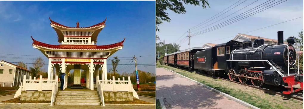 毛主席視察黃河紀(jì)念堂(左);毛主席視察黃河專列火車(仿制)(右)