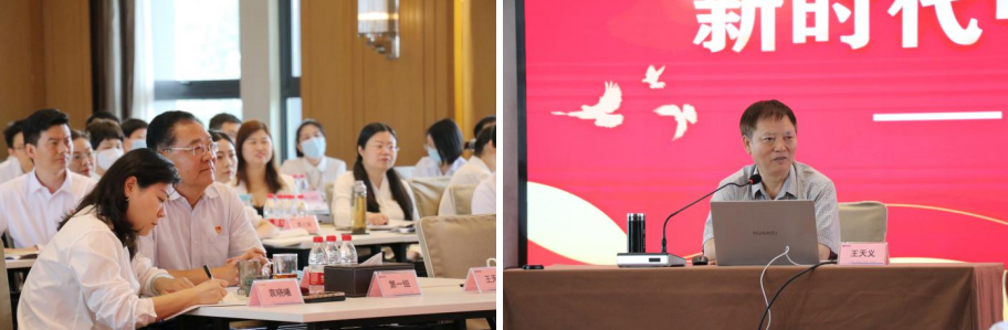 在上午的課程中,王教授系統解讀了習近平新時代中國特色社會主義思想的形成邏輯和重要內容,重點解讀了習近平經濟思想的根本內涵,并用理論結合實踐,深入淺出地剖析了當前國內外的經濟形勢。下午,王教授引古論今,闡述了中國式現代化的發展進程,深入比較了中國式現代化與西方式現代化的本質區別,系統分析了中國式現代化的目標、路徑和原則,豐富詳實的內容,博古通今、縱橫中西的精彩講述,引發了與會人員的深思。