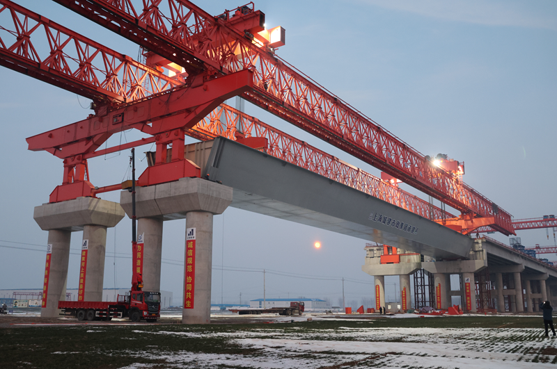2月25日,蘭封高速項目東壩頭黃河大橋首孔100m跨徑鋼箱梁成功架設(shè),為完成全年施工目標邁出了堅實的一步。此次架設(shè)是我國首次采用特大型架橋機整孔架設(shè)100m鋼箱梁,對我國橋梁施工具有重要意義。
