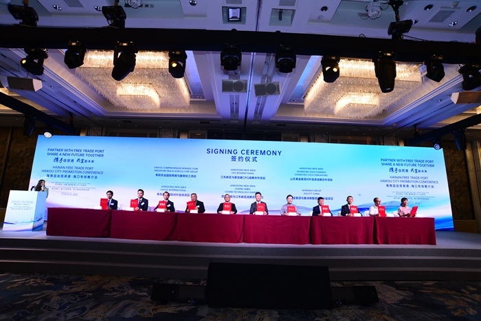 攜手自貿港,共享新未來。9月25日,??谑性谛录悠屡e辦全球大招商活動,來自新加坡、德國、法國、日本等國家和地區的企業,與??谟嘘P單位共簽約34個重點項目,項目總投資額近100億元。鴻寶集團副董事長、總裁袁曉曦與鴻寶集團董事、海南投資控股公司總經理李真受邀參加此次大會。